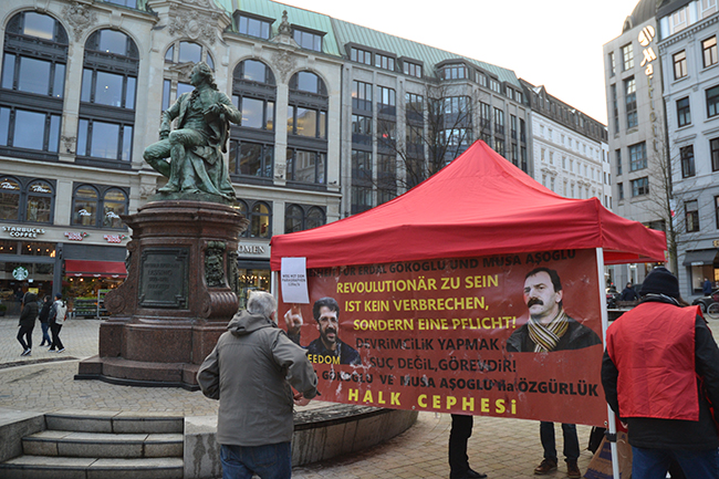 For more than two weeks, an information stand on Musa AÅŸoÄŸlu and political prisoners has been installed each Thursday, Friday and Saturday at Gänsemarkt square in Hamburg, Germany.