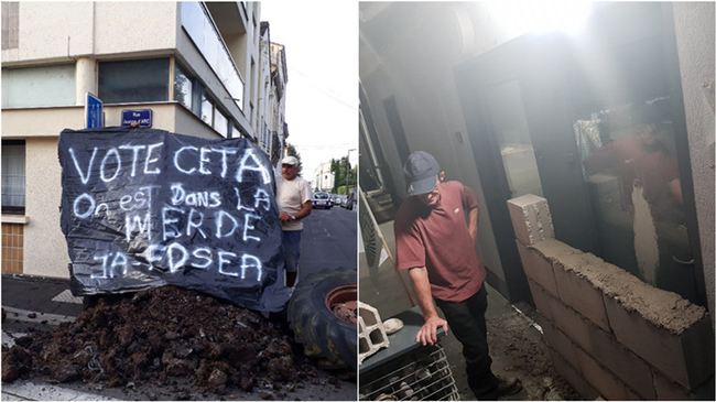 Fumier et briques : des agriculteurs s'en prennent aux permanences de députés LREM pro-CETA