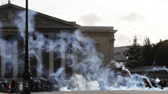 Des canons Í eau et du gaz lacrymogène Í la manifestation des sapeurs-pompiers Í Paris