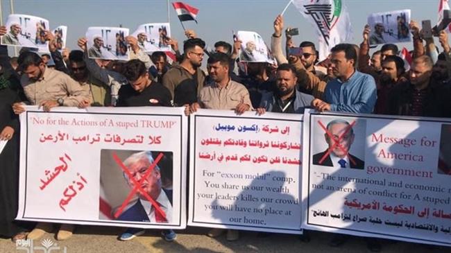 Une source sécuritaire bien informée dans la province de Bassora dans le Sud irakien a déclaré à l’agence de presse Fars News que les manifestants s’étant rassemblés devant l’office d’ExxonMobil brandissaient des pancartes sur lesquelles on pouvait lire : « Vous pillez nos richesses nationales, alors que vos dirigeants tuent nos forces populaires, les Hachd. Vous n’avez plus aucune place dans notre pays. »