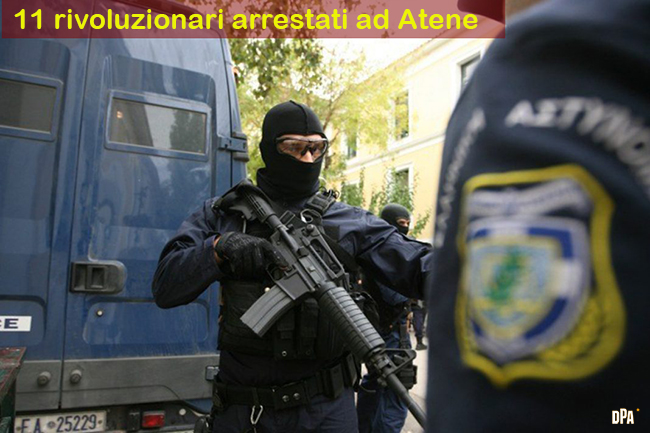 Il 19 marzo ad Atene sono stati presi in custodia 26 rivoluzionari in tre luoghi differenti. Altre 7 persone erano state prese in custodia dalla strada mentre protestavano contro le incursioni, poi rilasciate. 15 delle 26 arrestate quella mattina sono state rilasciate il giorno stesso, 11 portate in tribunale ad Atene per direttissima, ma costrette ad aspettare nel blindato della polizia. Lo stesso giorno, dopo che i rivoluzionari avevano atteso dalle 13 alle 19 nel blindato ammanettati in uno spazio piccolissimo, quindi sotto tortura, hanno deciso di rinviare l’udienza in tribunale al 24 marzo alle 10.00, e portati in procura.