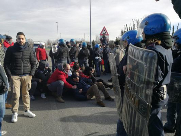 Lo sciopero è stato un forte rilancio della pratica dello sciopero e del picchetto. Una giornata iniziata la mattina con un presidio non annunciato davanti a Italpizza, vertenza simbolo, e proseguita nel pomeriggio con una piazza gremita dove si sono susseguiti numerosi interventi di delegati sindacali e di realtà sociali. Molti interventi hanno tracciato una linea di continuità con quanto sta avvenendo anche in Val di Susa (No Tav). Ricordiamo che la scorsa settimana, la polizia di Torino a fatto irruzione nelle abitazioni di due compagni del P. Carc: Andrea Gozzi ed Alessandro Della Malva, impegnati nel movimento NO TAV, con la pretestuosa motivazione della “ricerca di armi e esplosivi”, sono state perquisite le abitazioni dei due compagni ed è stato sequestrato loro (in maniera arbitraria ed immotivata) materiale politico, supporti digitali e i propri computer. A seguito della perquisizione i compagni sono stati portati in Questura e qui trattenuti per diverse ora con il pretesto della notifica dei verbali della perquisizione e della denuncia per “minacce”.
