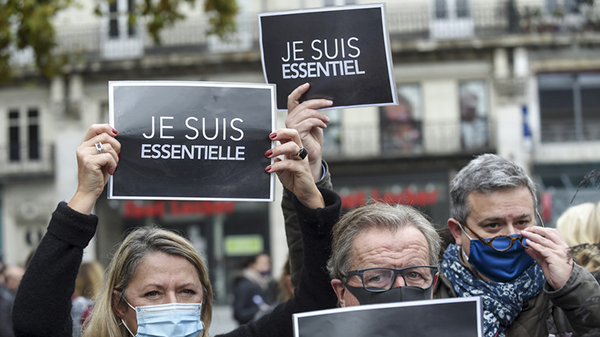 Plusieurs mobilisations ont lieu en France pour dénoncer les mesures restrictives visant à lutter contre la pandémie. Les commerçants sont en première ligne ce 14 novembre, dénonçant les répercussions des mesures sur leurs entreprises.