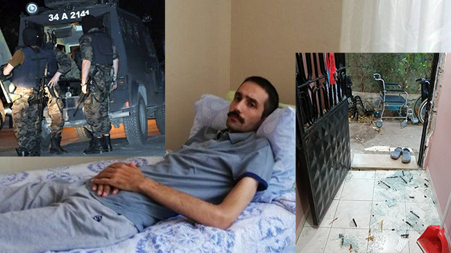 In the neighbourhood, including Alevite's House (Cemevi) 30 houses were raided and 6 People detained, among those also Ferhat Gercek, a young man who was disabled after being shot in his back by the police. He is wheelchair-bound since the age of 17.