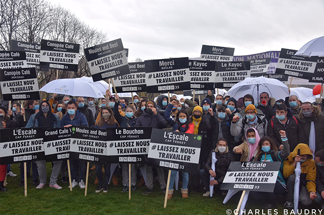 «Laissez-nous travailler, laissez-nous ouvrir, laissez-nous vivre» : ce 14 décembre, à l'appel de l'UMIH (union des métiers et des industries de l'hôtellerie), des centaines de restaurateurs, hôteliers, gérants de discothèques et professionnels du tourisme venus de toute la France ont manifesté à Paris pour demander à pouvoir reprendre leurs activités, fortement affectées par les mesures restrictives édictées par le gouvernement pour faire face au Covid-19.