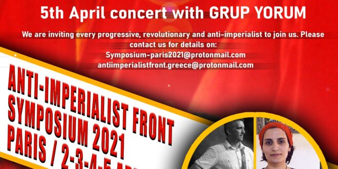 Anti-Imperialist Front is proud to announce the traditional Symposium Against Imperialist Aggression “Eyup Baş” that will be held in Paris, on 2nd of April 2021 and last for three days ending with concert of Grup Yorum on 5th of April.