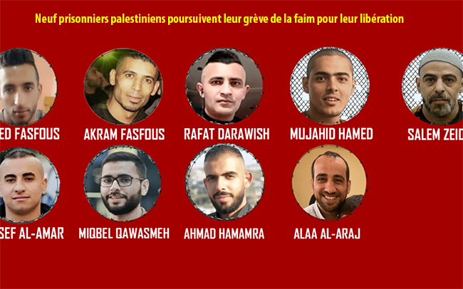 Le réseau de solidarité avec les prisonniers palestiniens Samidoun, dont est membre le Collectif Palestine Vaincra, appelle tous les partisans de la Palestine à agir pour soutenir ces neuf grévistes de la faim palestiniens et tous les prisonniers palestiniens qui luttent pour la liberté, pour leur propre vie et pour le peuple palestinien. Ils affrontent le système d’oppression israélien en première ligne, avec leur corps et leur vie, pour mettre fin au système de détention administrative. Développons des actions pour soutenir les grévistes de la faim et la lutte pour la libération de la Palestine de la mer au Jourdain !