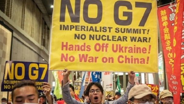 Hundreds of protesters gathered in Hiroshima's Funairi Daiichi Park, not far from the summit's venue, to decry the finger-pointing bloc that advertises its own version of world order.