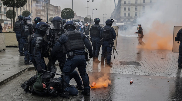 Emeklilik reformuna karşı yapılan son sokak protestoları sırasında Fransız polisinin "emirleri uygulayıp uygulamadığı" sorusu gündeme geldi. Örneğin, polisin sorumluluklarından biri, ayaklanmaların ortasında özel polis desteğinden yararlanabilmesi gereken gazetecilerin çalışmalarını kolaylaştırmaktır. Fransa'nın batısındaki Rennes'de, emeklilik reformuna karşı düzenlenen gösteriler sırasında, serbest çalışan gazeteciler saldırıya uğradı, dövüldü ve tehdit altında koruyucu ekipmanlarını çıkarmaları istendi; bu sahnenin video kayıtları sosyal ağlarda paylaşıldı.