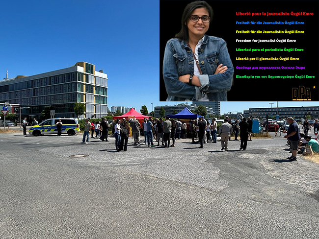 Almanya'nın Duisseldorf şehrinde bu sabah saat 09.30'da devrimci gazeteci Özgül Emre, İhsan Cibelik ve Serkan Küpeli hakkında açılan davanın ilk duruşması başladı. Gergin başlayan mahkeme heyetine tepki gösteren tutsaklar ve onlara destek veren yaklaşık 100 izleyici sırtını döndü. Bu tepkinin amacı ise mahkeme heyeti tarafından alınan karar ile tutsakların cam kafeste konularak duruşmaların yapılmasıydı. Tutsakların ve izleyicilerin tepki üzerine ayrıca günlerdir bu konuda yapılan teşhir afişleri sonucu hâkim bu kararından vaz geçmek zorunda kaldı. Buradan sonuç alamayan mahkeme heyeti ardından salonda yer alan ve üzerinde "Özgül Emre, İhsan Cibelik ve Serkan Küpeli"ye özgürlük" tişörtleri giyen Eda Deniz Haydaroğlu ve Sevil Sevimli'nin salondan çıkartılmasını istedi. Mahkeme binasının güvenlik birimleri iki kadının etrafını sararak dışarıya çıkartmak istedi. Kitlenin sahiplenmesi sonucunda güvenlik birimleri dışarıya çıktı.