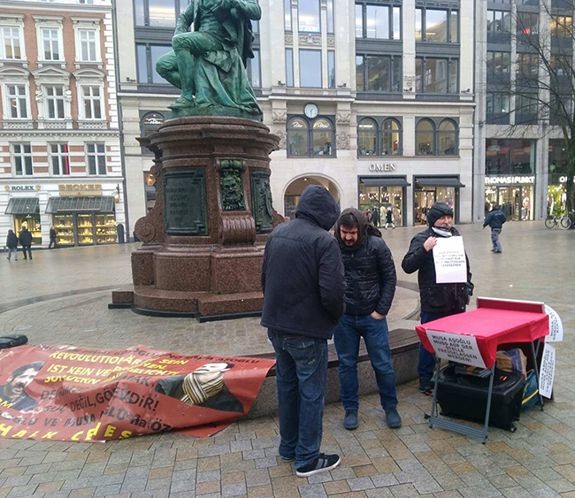 Per la settimana scorsa, uno stand informativo su Musa AÅŸoÄŸlu e prigionieri politici è stato installato da giovedì a sabato nella piazza Gänsemarkt ad Amburgo, in Germania.