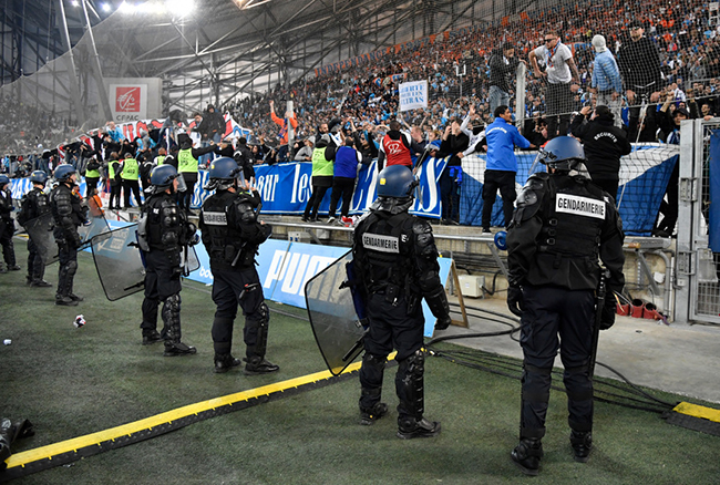 Plus d'une heure après la fin de la rencontre, des dizaines de supporters poursuivaient ainsi leur face-à-face avec les forces de l'ordre sur le parvis Jean-Bouin, face au boulevard Michelet. Jets de fumigènes, de bouteilles en verre, de cailloux et de projectiles divers du côté des supporters, réponse avec des grenades lacrymogènes du côté des policiers.