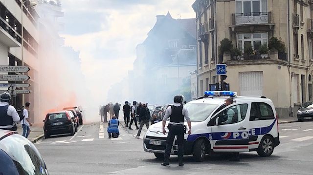Rue Voltaire, un commissaire est touché au genou par un jet de pavé. Cinq policiers reconnaissent le prévenu, ce qui est tout de même impossible à confirmer par la vidéosurveillance. Lui dit qu'avec un verre dans la main, et dans son état, il ne pouvait rien lancer. Le tribunal l'a tout de même envoyé en prison et condamné à verser 1.000 euros au policier, au titre du préjudice moral.
