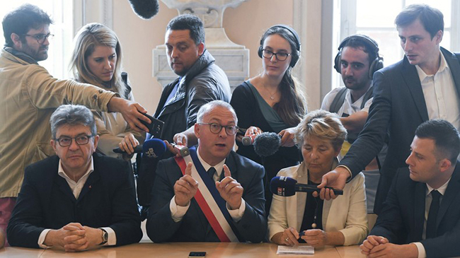 Par la voix de Francis Fontana, délégué Sud Industrie, l'intersyndicale a souligné auprès de l'AFP ne «pas partager les valeurs du RN», tandis que les deux élus RN ont accusé les syndicats de «discréditer leur combat». D'après un journaliste de L'Est républicain, le maire Les Républicains de Belfort Damien Meslot a confirmé ce refus d'accès et expliqué ainsi : «C'est l'intersyndicale qui invite [à la conférence de presse]!».