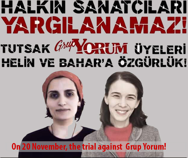The trial against the members of the Grup Yorum Helin Bölek and Bahar Kurt on November 20 at 09.30 am at the Caglayan Courthouse 35.