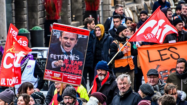 Mit der Einführung des Imperialismus und der Mitarbeit des französischen Präsidenten E. Macron wehren sich die Bürger gegen die Rentenreform, die den Menschen in Frankreich auferlegt werden soll! Unter der Leitung des General Confederation of Employees (CGT), der Gewerkschaften, der Demokratischen Massenorganisationen, der Eisenbahner, der Beschäftigten im öffentlichen Verkehr, der Beschäftigten im Gesundheitswesen, des privaten Sektors, der Anwälte, der Pädagogen, der Studenten, der Intellektuellen, der Künstler, der Operntänzer, der Bibliotheksmitarbeiter oder aller, die an die Zukunft denken und ihre Reaktion auf die Rentenreform, die zum Wohle der Kapitalisten vorbereitet und der Öffentlichkeit mit Unwahrheiten präsentiert wird, wurde durch ihre Aktionen auf den Feldern zum Ausdruck gebracht, und zwar seit 28 Tagen.
