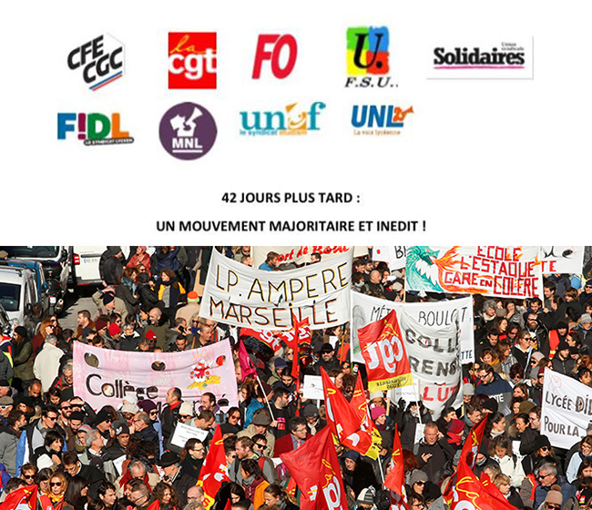 C’est pourquoi les organisations syndicales CFE-CGC, CGT, FO, FSU, Solidaires, MNL, UNEF, UNL et FIDL appellent à réunir des assemblées générales pour continuer et amplifier encore la mobilisation afin d’obtenir le retrait de ce projet et l’ouverture de véritables négociations sur la base de nos propositions.