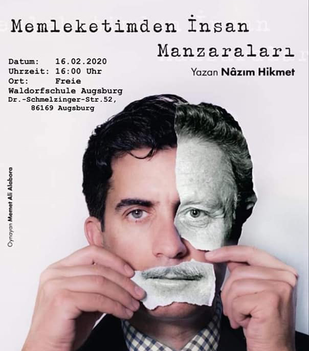 ATIK (Konföderation der Arbeiter aus der Türkei in Europa), ATIF (Föderation der Arbeiter aus der Türkei in Deutschland) und das IKZ (Internationales Kulturzentrum aus Augsburg) eine Theateraufführung Am 16. Februar vom Exil-Künstler Memet Ali Alabora über Nazim Hikmet und das Thema "Menschliche Landschaften aus meiner Heimatstadt".