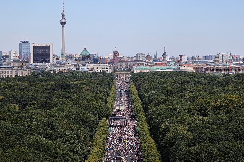 «Bas les masques», «Pas de vaccination obligatoire», ou «Retour des libertés !» : une marée humaine a envahi les rues de Berlin le 1er août pour exiger la fin des restrictions mises en place afin de combattre le Covid-19. Si la marche était pacifiste, elle a tout de même été dispersée, non sans violence, par la police car les manifestants ne portaient pas de masques.