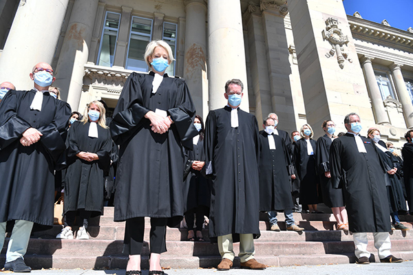 Une petite centaine d'avocats se sont rassemblés ce lundi à midi devant le tribunal judiciaire de Strasbourg à l'appel de la Conférence des bâtonniers.