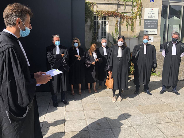 Une petite trentaine d’avocats du barreau de Vannes se sont réunis à midi, ce lundi 7 septembre 2020, comme partout en France, pour faire part de leur émotion après le décès de leur consœur, Ebru Timtik, avocate turque de 42 ans, décédée jeudi 27 août 2020 après 238 jours de grève de la faim. Elle avait été condamnée, « sans avoir bénéficié d’un procès équitable », à plus de 13 ans de prison pour « appartenance à un groupe terroriste, en réalité, pour avoir défendu ses clients » a expliqué le bâtonnier David Le Reste, en préambule à une prise de parole devant le palais de justice de Vannes. « L’idée de ce rassemblement est de faire comprendre au gouvernement turc et à la communauté internationale qu’il est temps que les choses bougent. » Petite lueur d’espoir : l’avocat Aytac Unsal vient d’être libéré après 213 jours de grève de la faim.