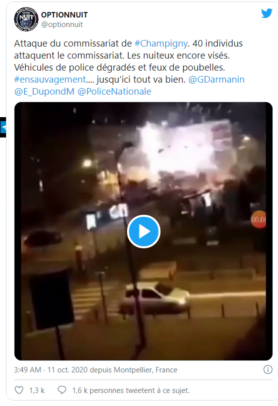Le commissariat de la ville Champigny-sur-Marne (Val-de-Marne), à 15 kilomètres de Paris, a été attaqué peu avant minuit par une quarantaine de personnes à coups de barre de fer et de jets de projectiles, dans la soirée du 10 octobre.