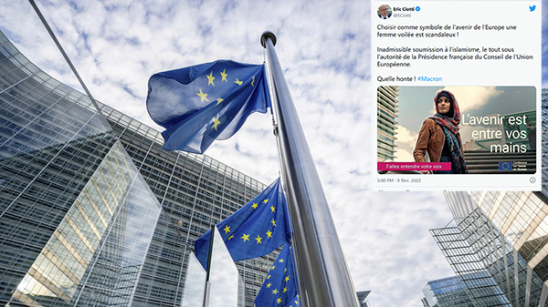«Inadmissible soumission à l’islamisme, le tout sous l'autorité de la Présidence française du Conseil de l'Union Européenne», écrit sur Twitter le député LR Eric Ciotti, jugeant le symbole «scandaleux».