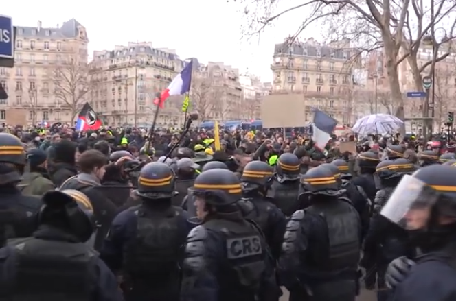 En France, les « gilets jaunes » se sont heurtés à la police anti-émeute à Paris, alors que des milliers de manifestants sont descendus dans la rue pour dénoncer la politique économique et la réforme des retraites du président français Emmanuel Macron.